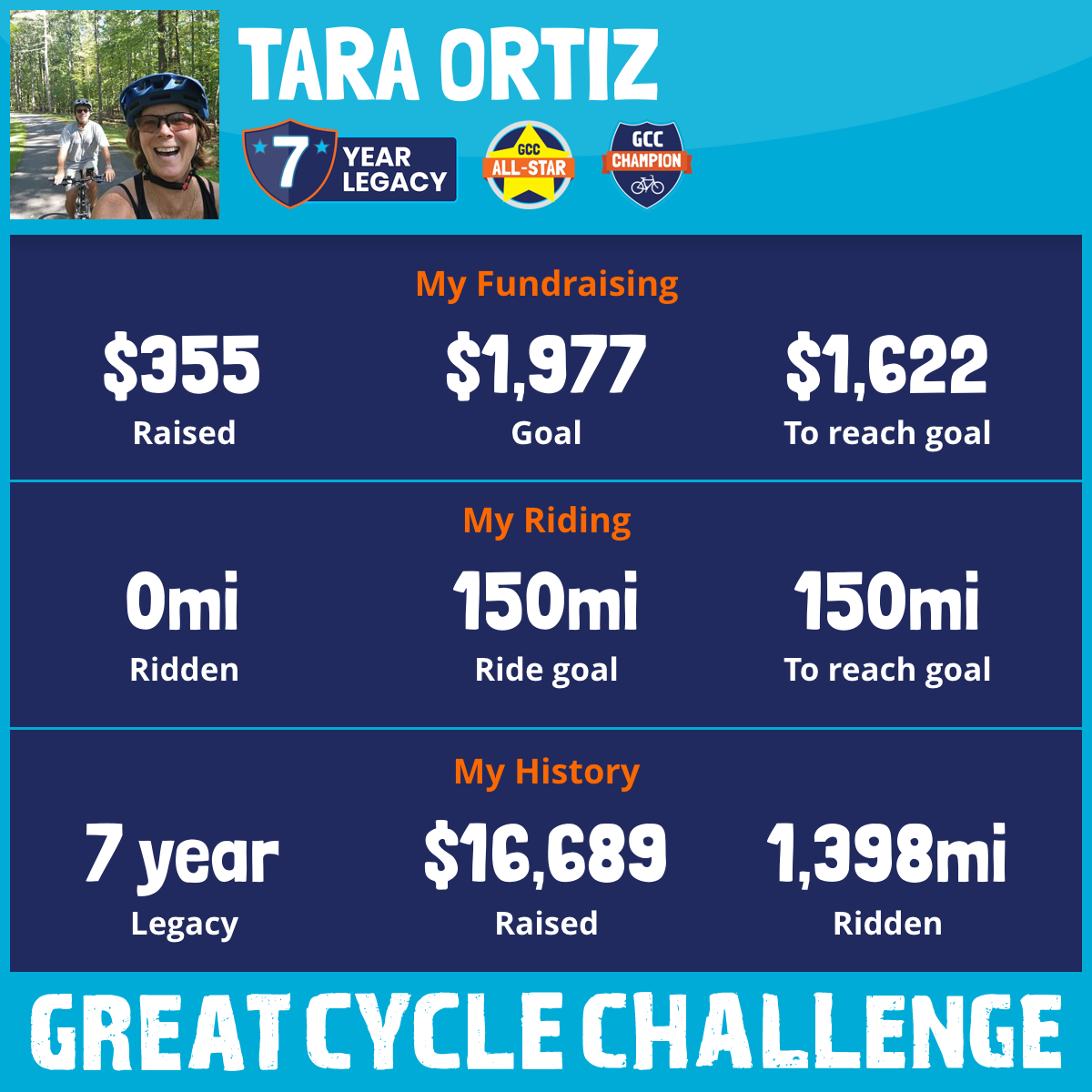 I am riding 150 mi for my friend, Jeri Myers Matrai, my high school friend, hence my goal 1977! Your donation is appreciated