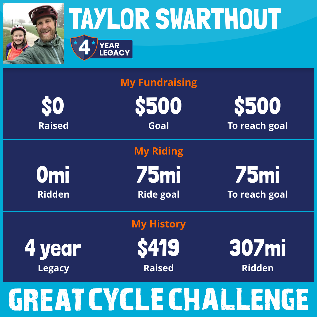 I am riding 75 mi in memory of Keara, Andrea, Paige. Please sponsor me and support my challenge to fight kids' cancer and save little lives.