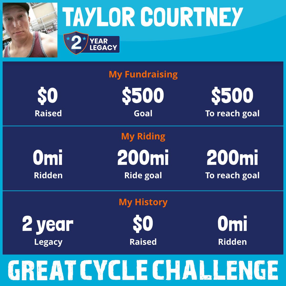 I am riding 200 mi in memory of Taylor. Please sponsor me and support my challenge to fight kids' cancer and save little lives.