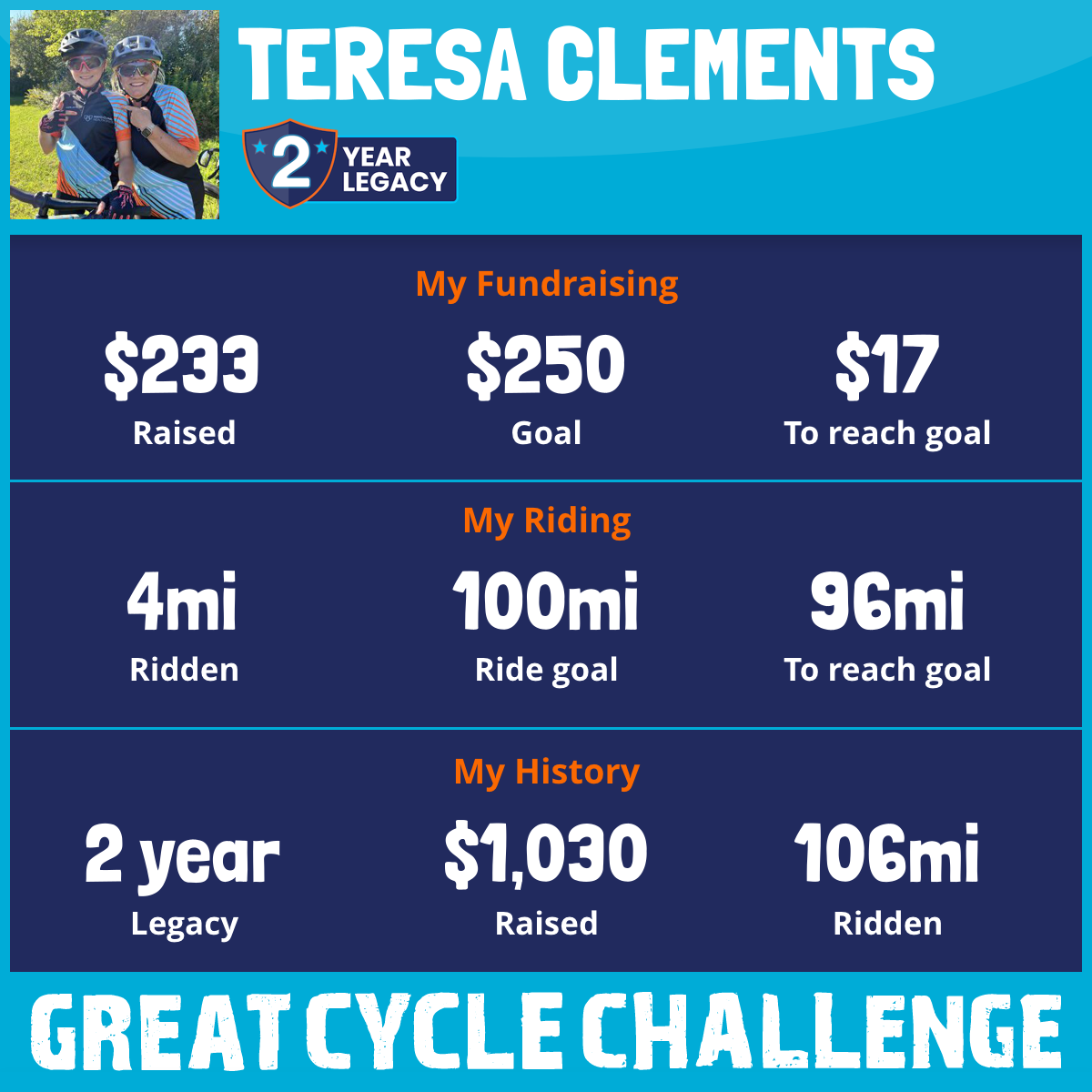 This September, I am taking part in the Great Cycle Challenge to fight kids' cancer. This is my second year and I am riding in honor of my Granddaughter Brooke once again. I will also be riding in honor of two colleague’s family members. A granddaughter of a long time friend and nursing colleague, and a son of one of my current friends and colleagues at Mayo. These two young teens are actively being treated for their respective cancers. Our family feels so blessed for the care Brooke has received at Mayo Clinic. My colleagues are in the midst of their kiddos journeys. I want to honor these kids and work towards a cure so no other child or family has to endure the unimaginable
