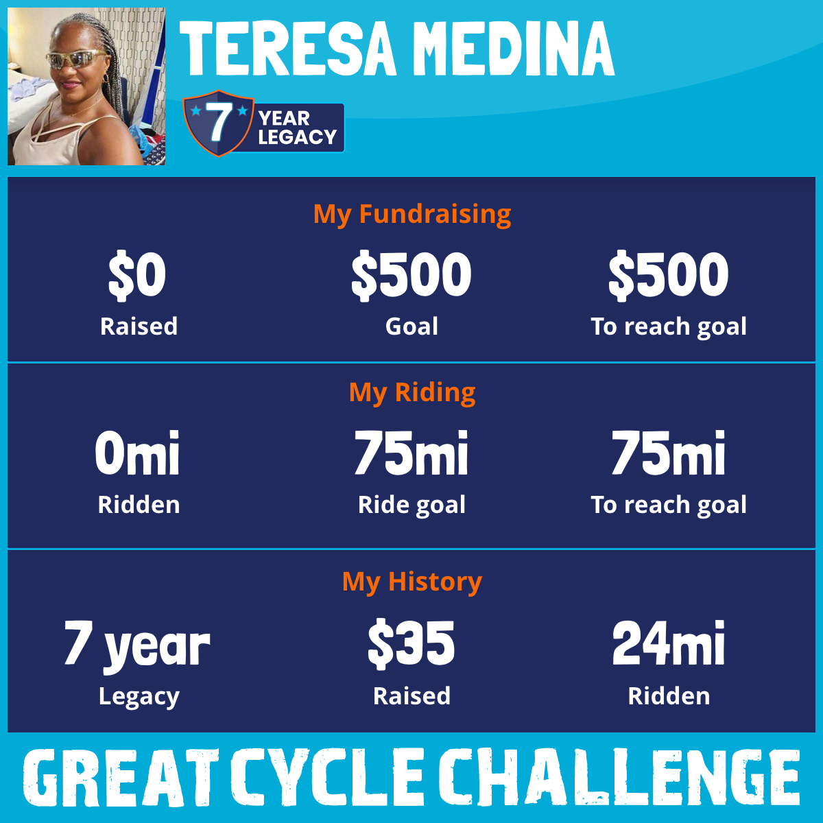 We miss a few lady's in our family that have pass in the last few years,and this ride I'm doing is for them lady's and all people and child to help stop this disease. From our hold family thank you.