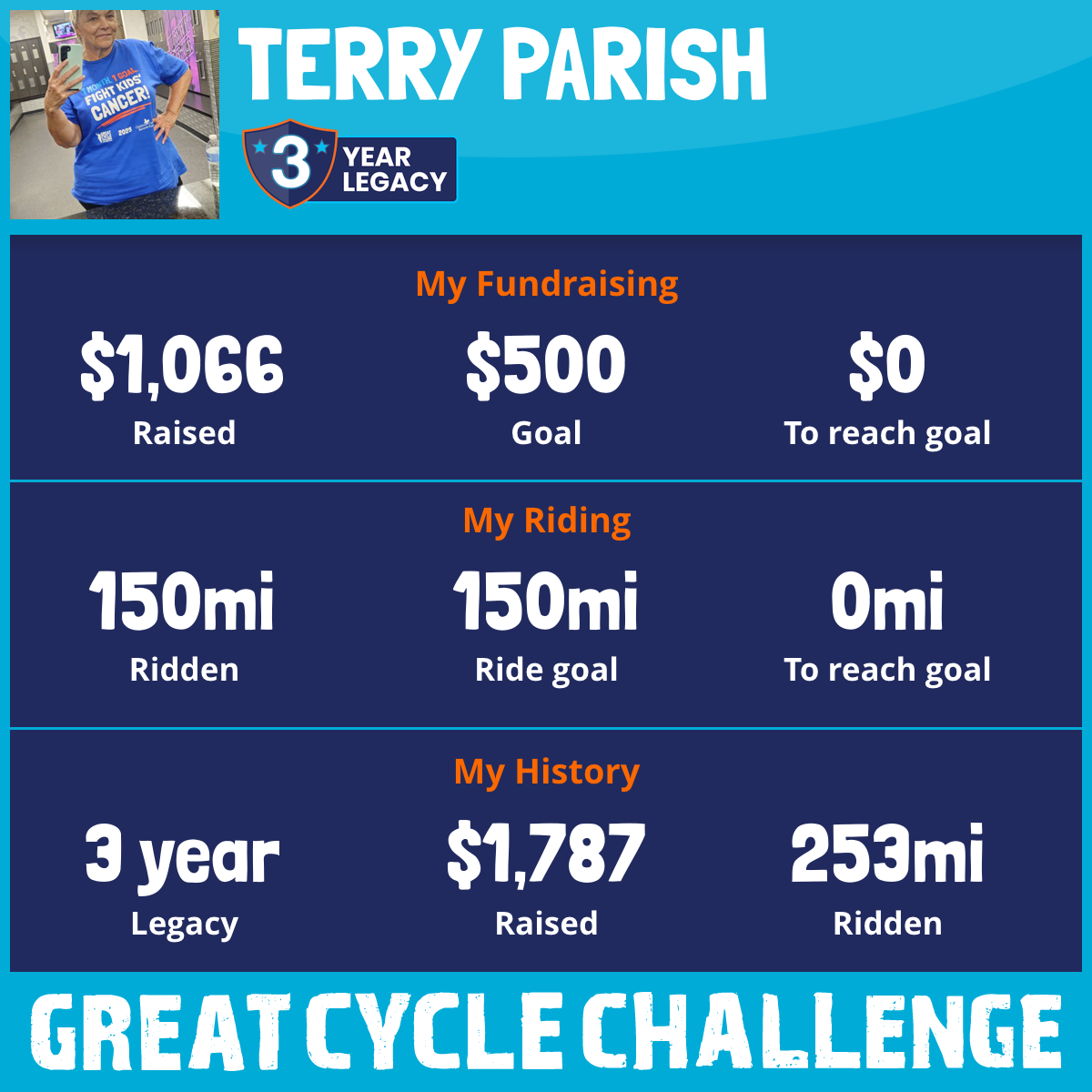 My son Travis is a cancer survivor! He fought cancer in his early adult years. Praise God, he is living a cancer free life! My sister-in-law Sue is living with and fighting cancer each and every day. She is a warrior. My sister-in-law Sharon fought cancer with all her might! She is the bravest person I've known. She showed such courage and positivity during her 10+ years battle with multiple cancers. I want to do this ride for each of them, to honor them and to help others that are beginning the battle. We all have friends and family that are fighting the hard battle against cancer. One diagnosis changes everything about life. This is my small part to help.