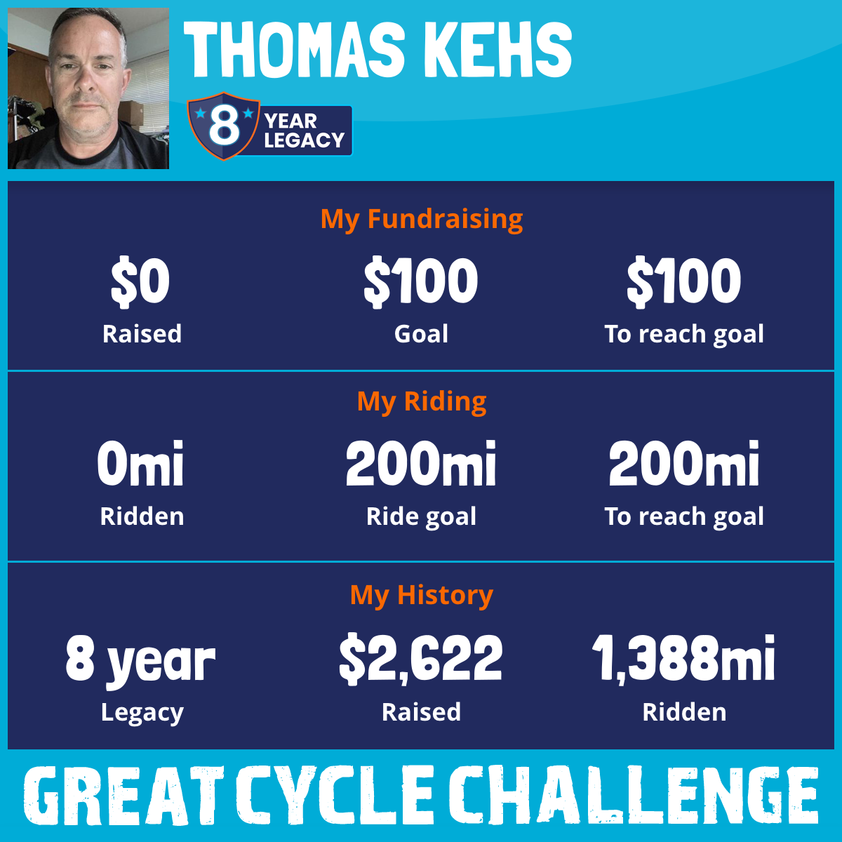 I am riding 200 mi in memory of my mum, Elizabeth Kehs. Please sponsor me and support my challenge to fight kids' cancer and save little lives.