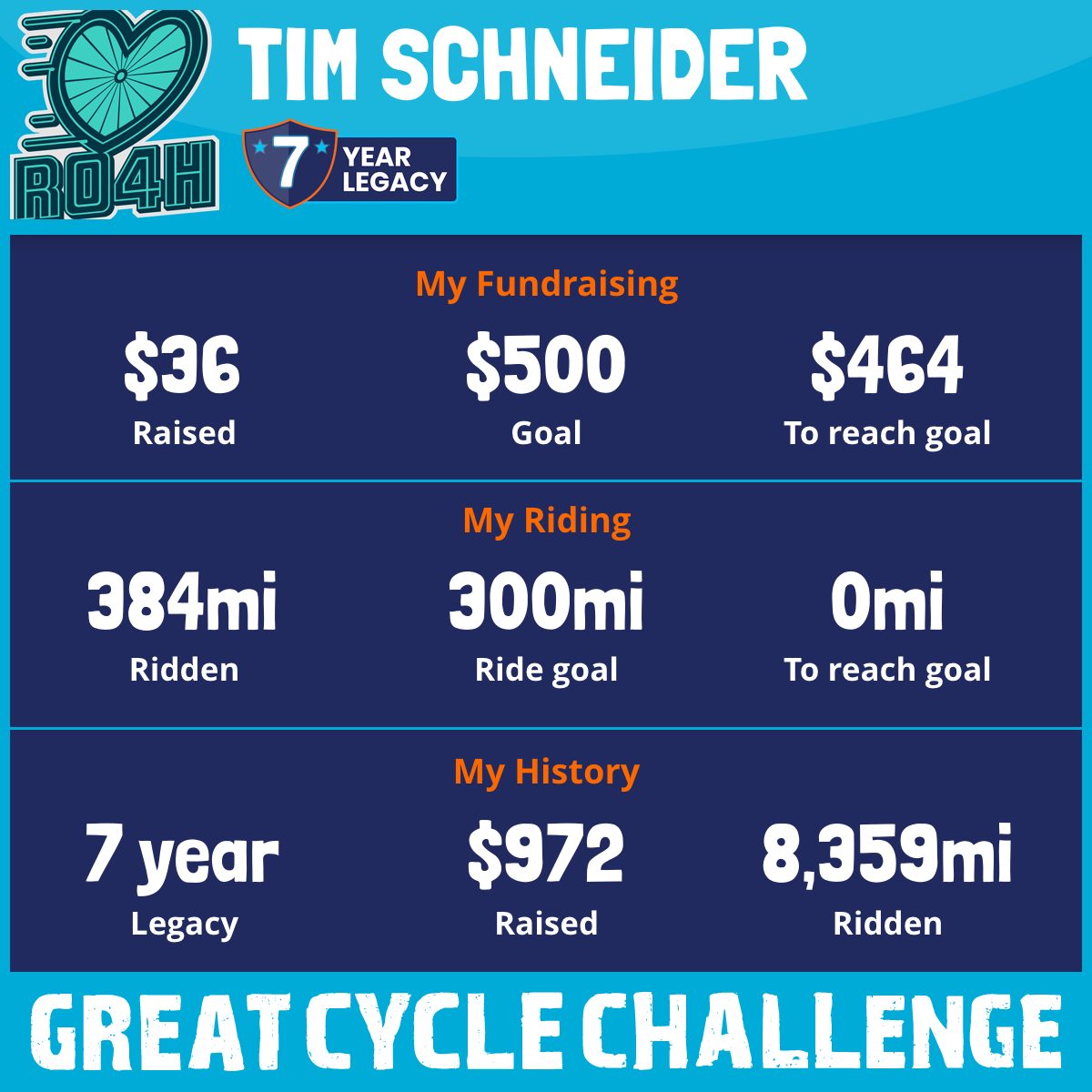 I am riding 300 mi to fight kids' cancer and save little lives. Please sponsor me to support my challenge!