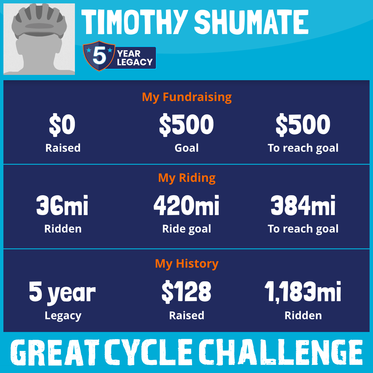 I am riding 420 mi to fight kids' cancer and save little lives. Please sponsor me to support my challenge!