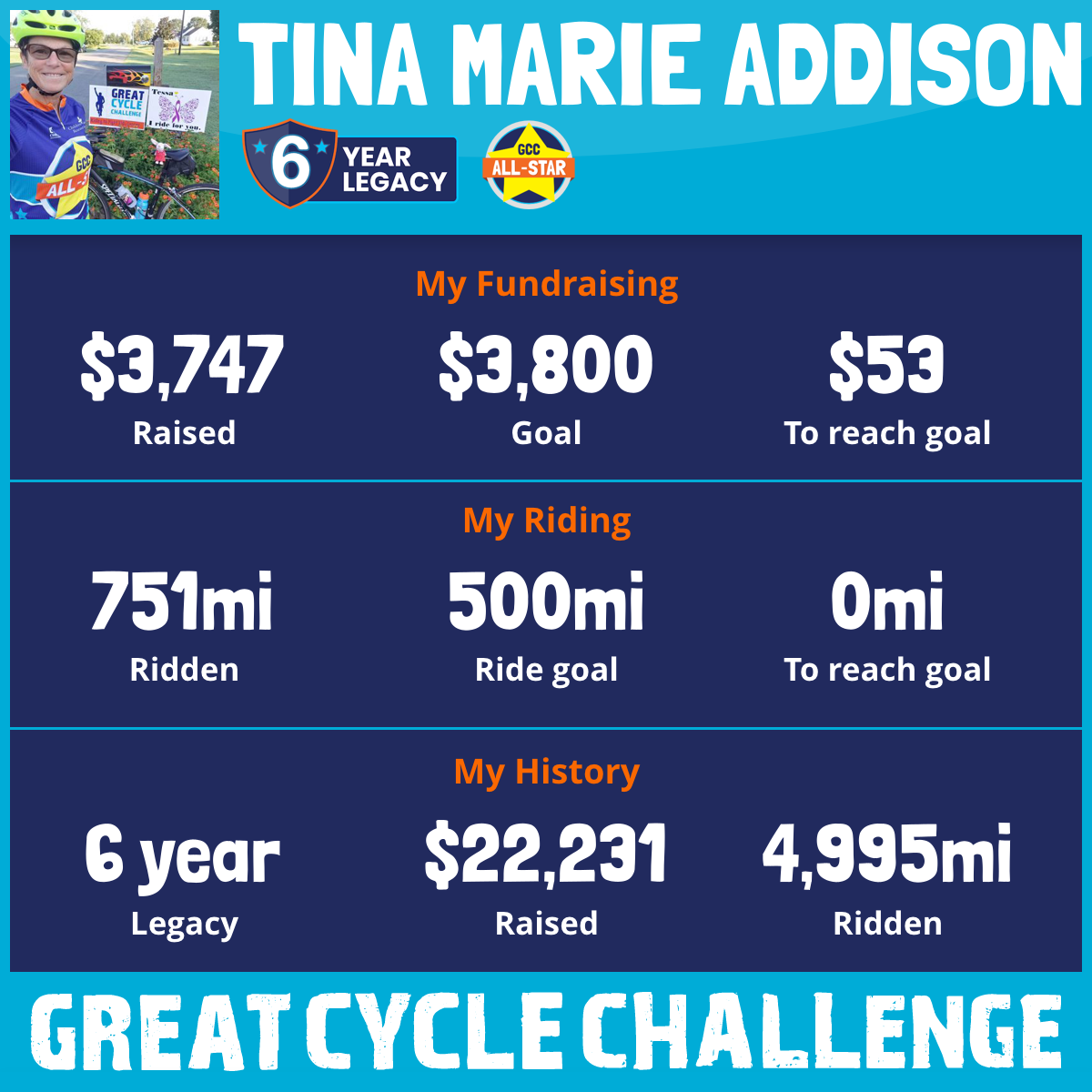 This September, I am taking part in the Great Cycle Challenge to fight kids' cancer! It will be my 6th year. I am honored to be able to ride for Childhood Cancer.