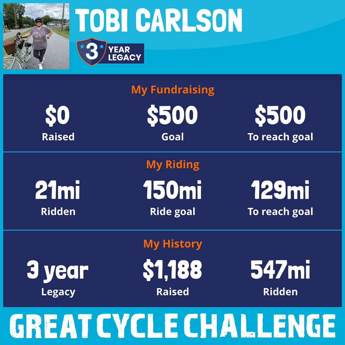 18 Sep 2025Jim and I rode the Cades Cove Loop in the Great Smoky Mountains National Park for a total of 21 miles today! It was a beautiful ride and we saw a momma bear and her 3 cubs… from a distance! I am riding hard to reach my 150 mile goal. I am less than $100 away from reaching my goal of $500. I would appreciate any donations if you feel led to give!