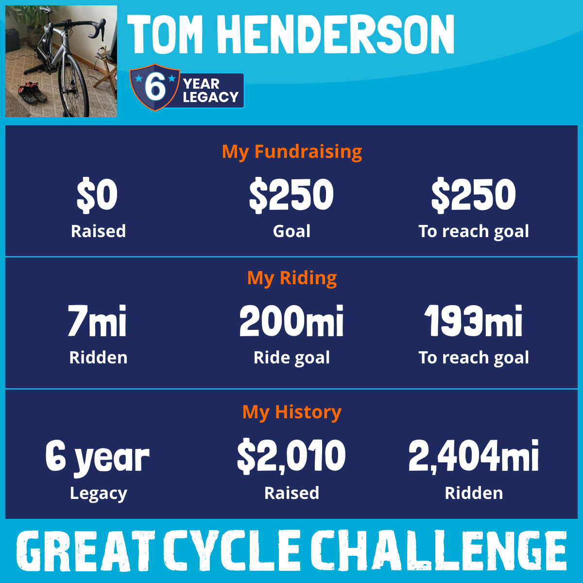 I am riding 200 mi to fight kids' cancer and save little lives. Please sponsor me to support my challenge!