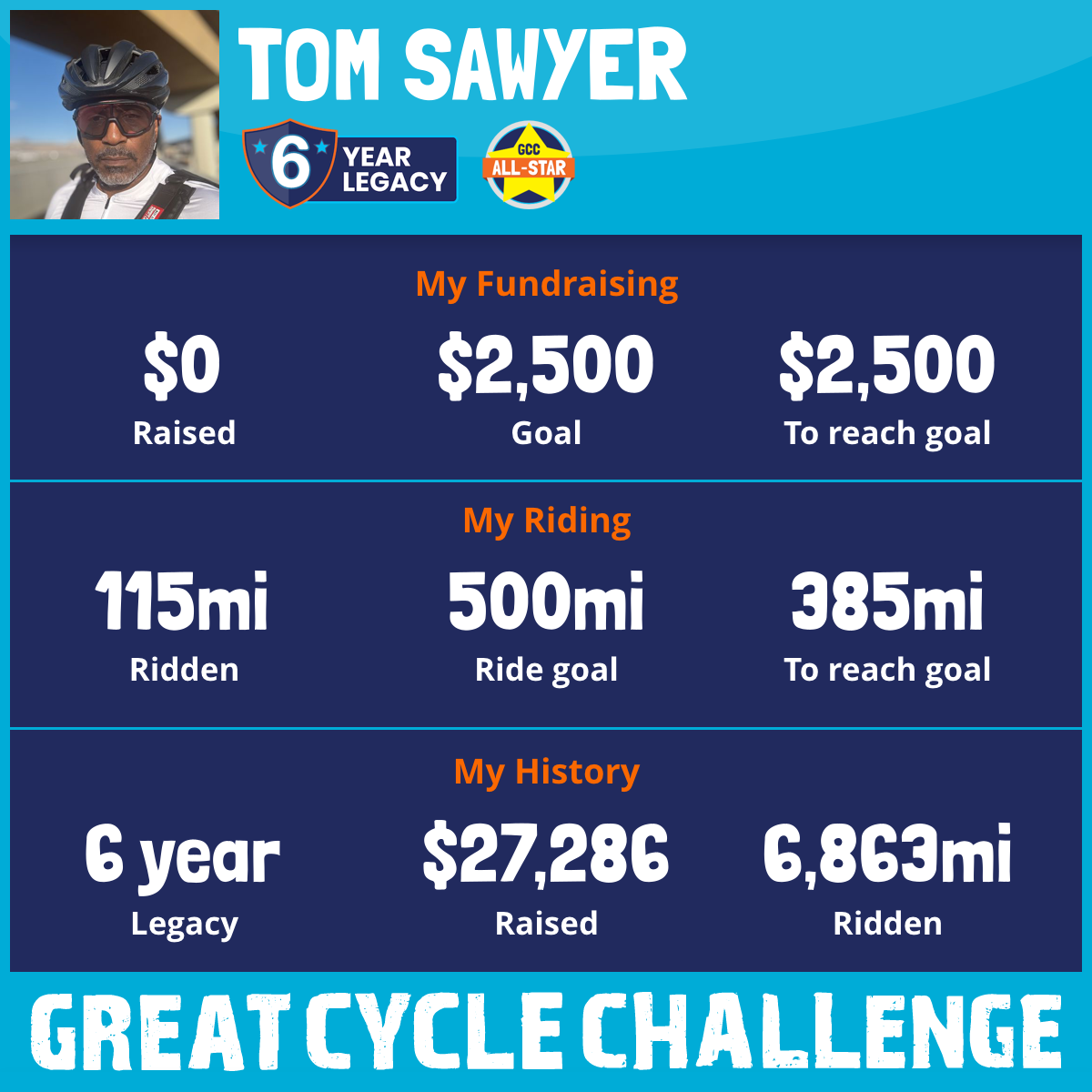 1,083 mi Ridden$7,266 Raised2021