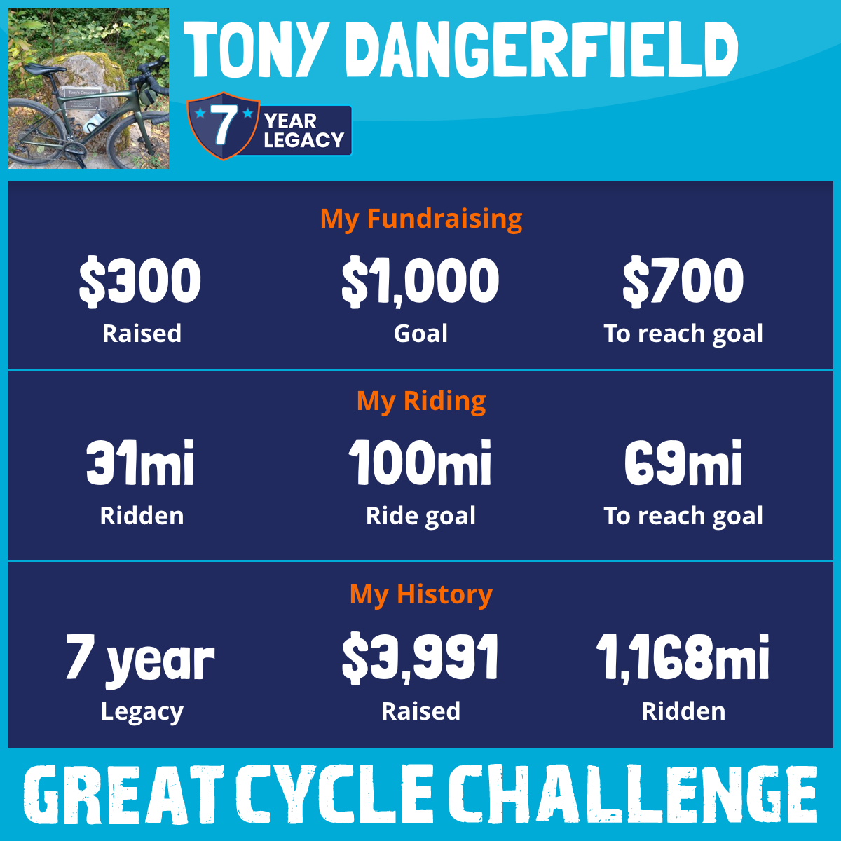 I've raised $300 My goal is $1,000 Donate Now