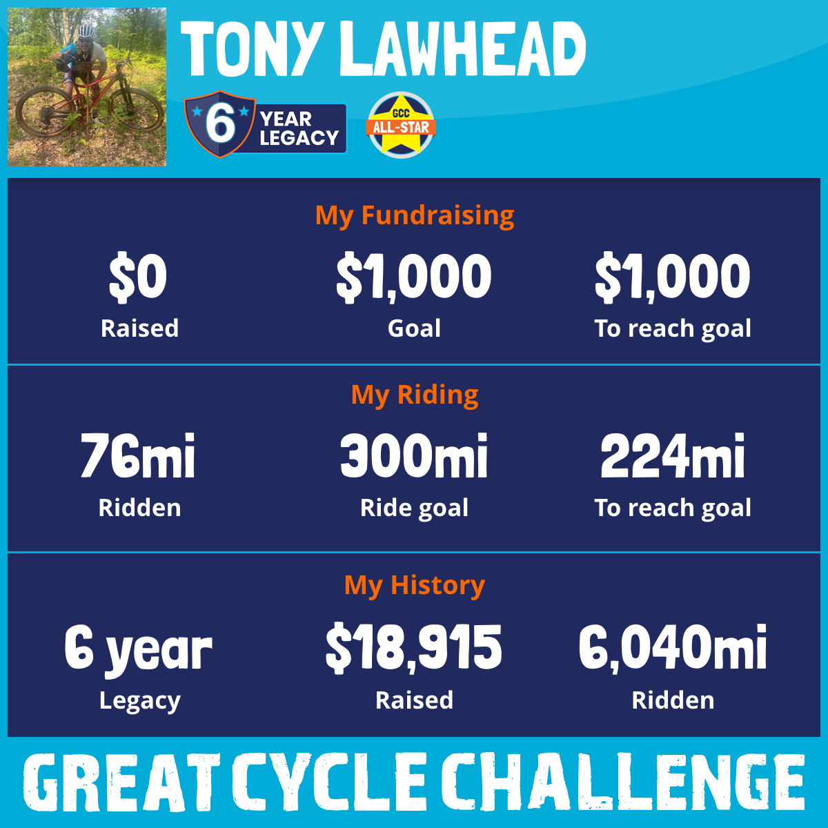 886 mi Ridden$3,659 Raised2021