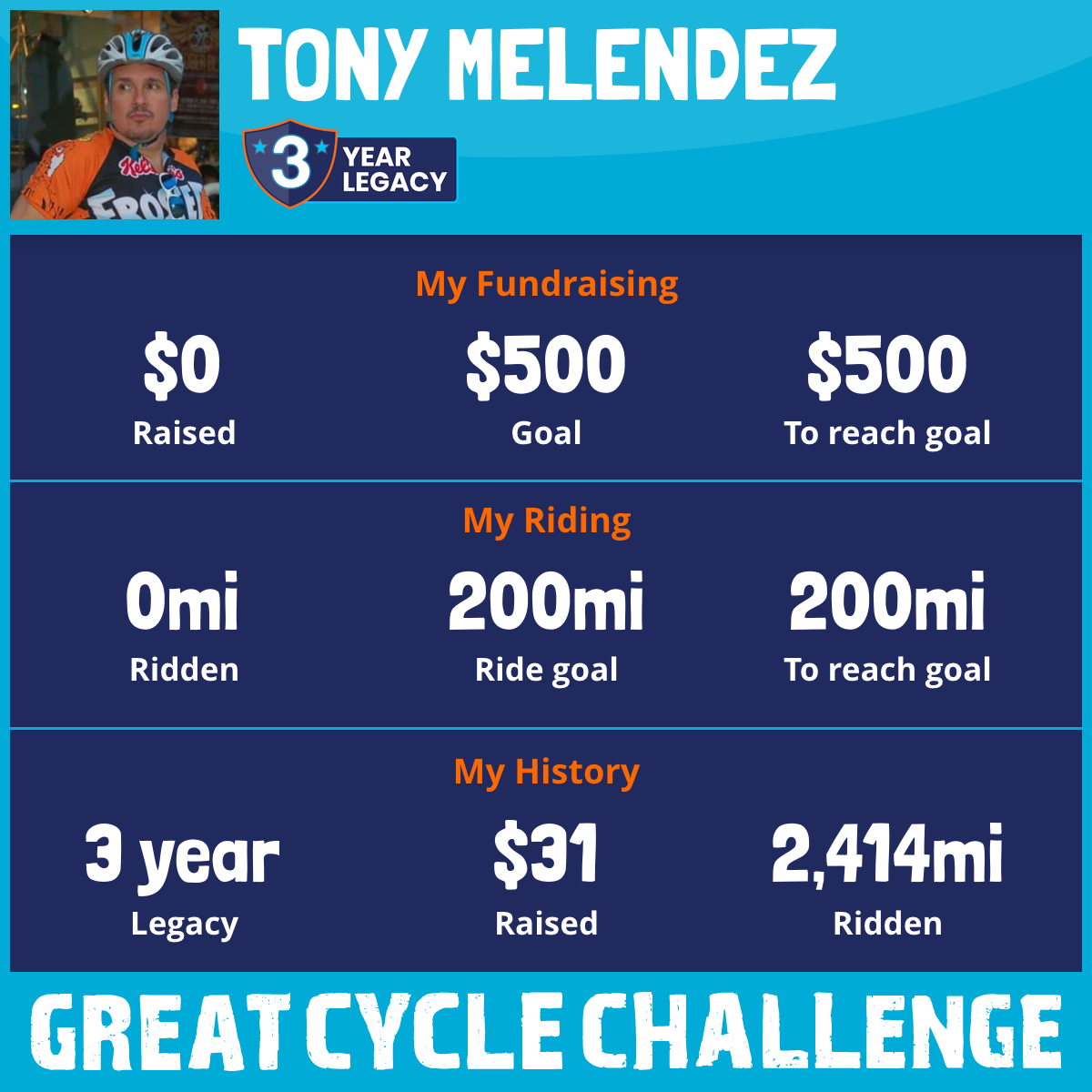 I am riding 200 mi in memory of Blanca Coira / Miguel Coira. Please sponsor me and support my challenge to fight kids' cancer and save little lives.