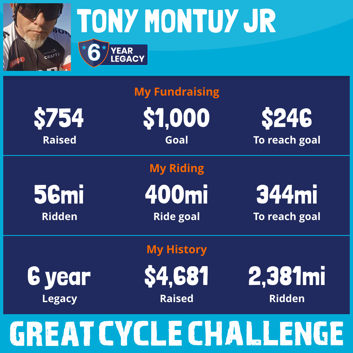 307 mi Ridden$1,341 Raised2023