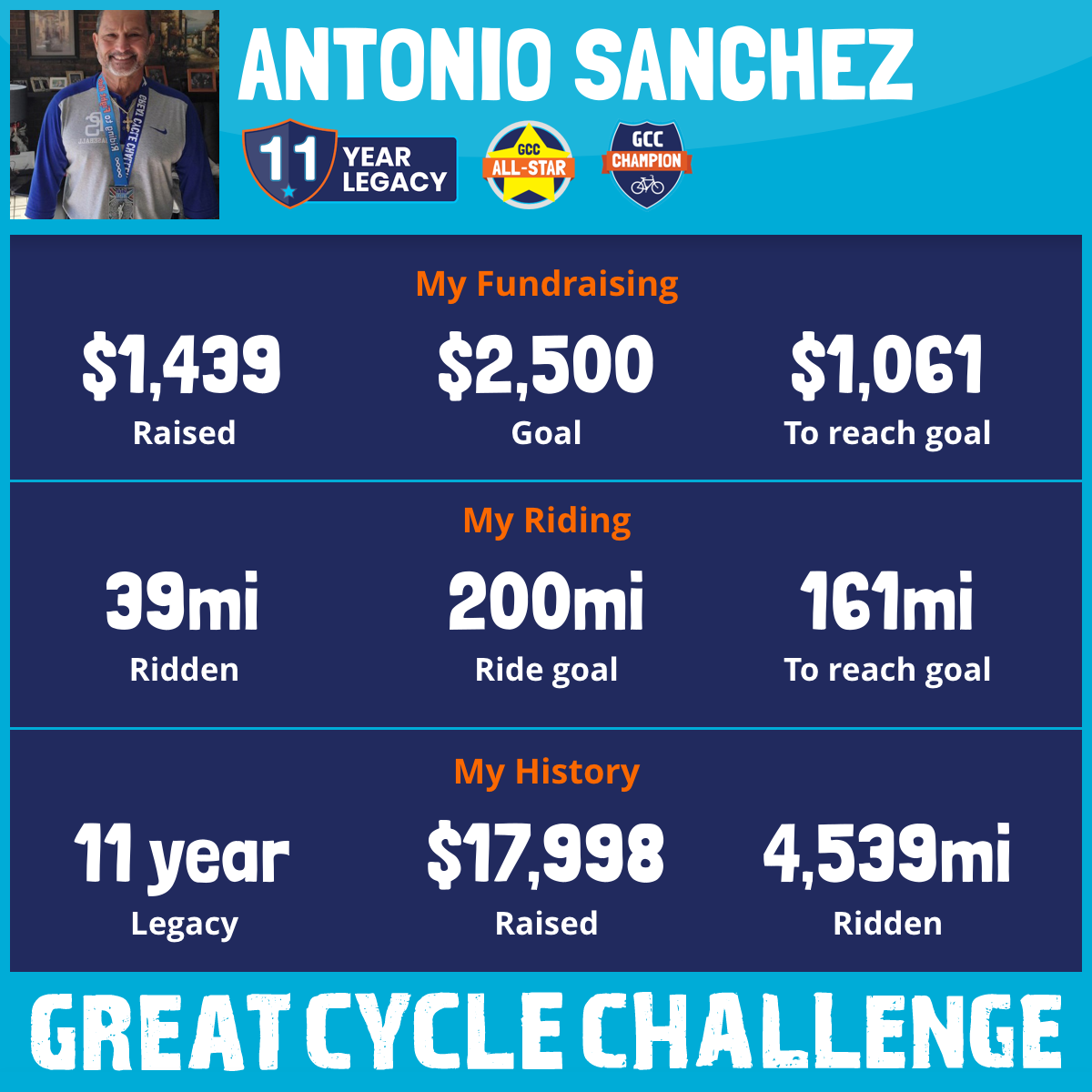 500 mi Ridden$2,870 Raised2019