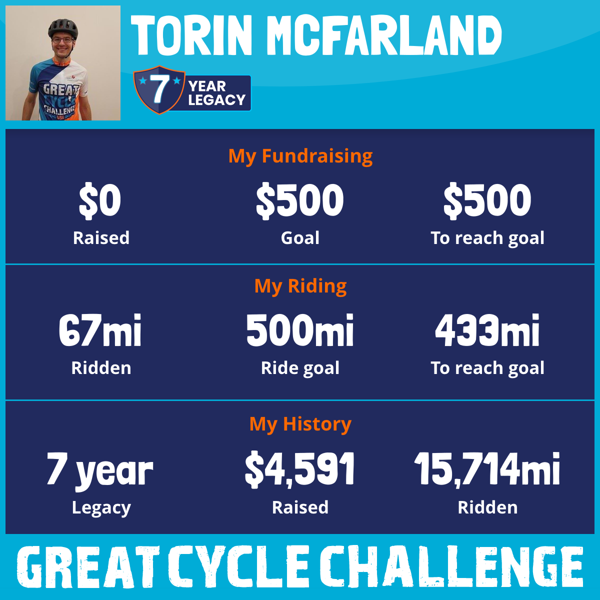 3,148 mi Ridden$701 Raised2021
