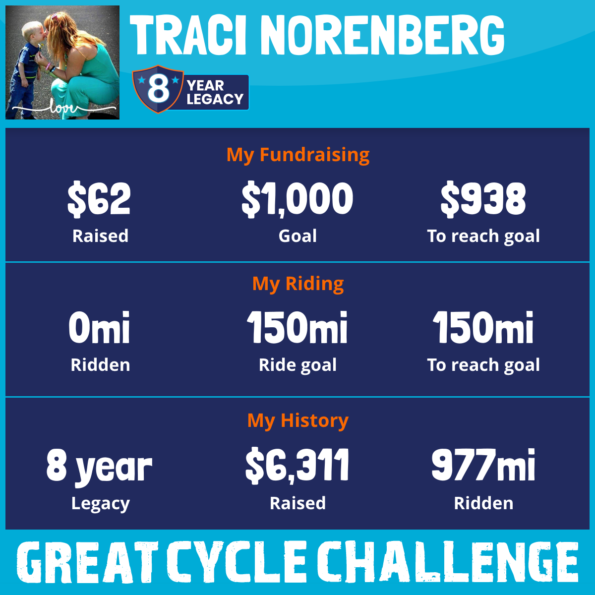 150 mi Ridden$1,010 Raised2024
