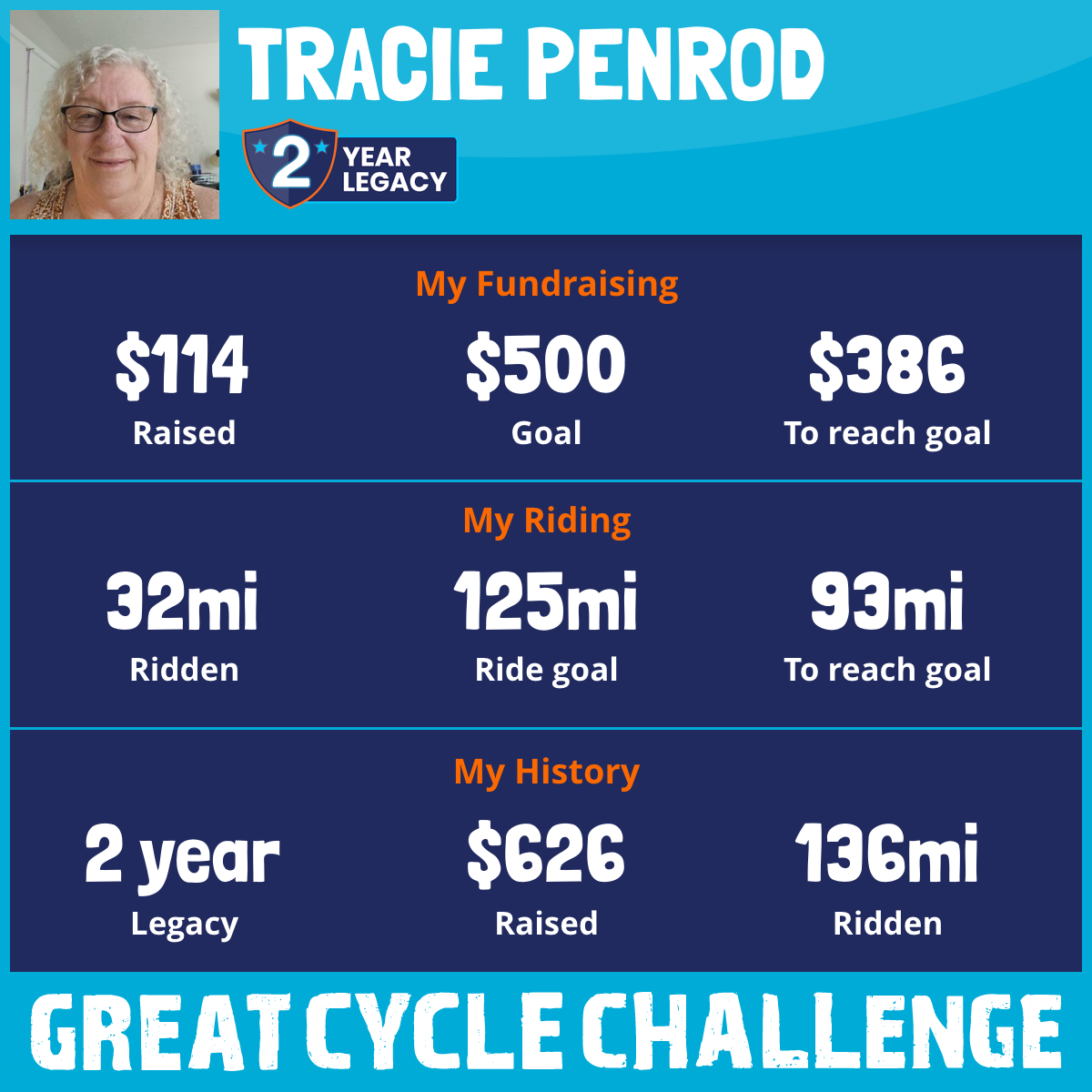 I am riding 200 mi in memory of Douglas Penrod. Please sponsor me and support my challenge to fight kids' cancer and save little lives.