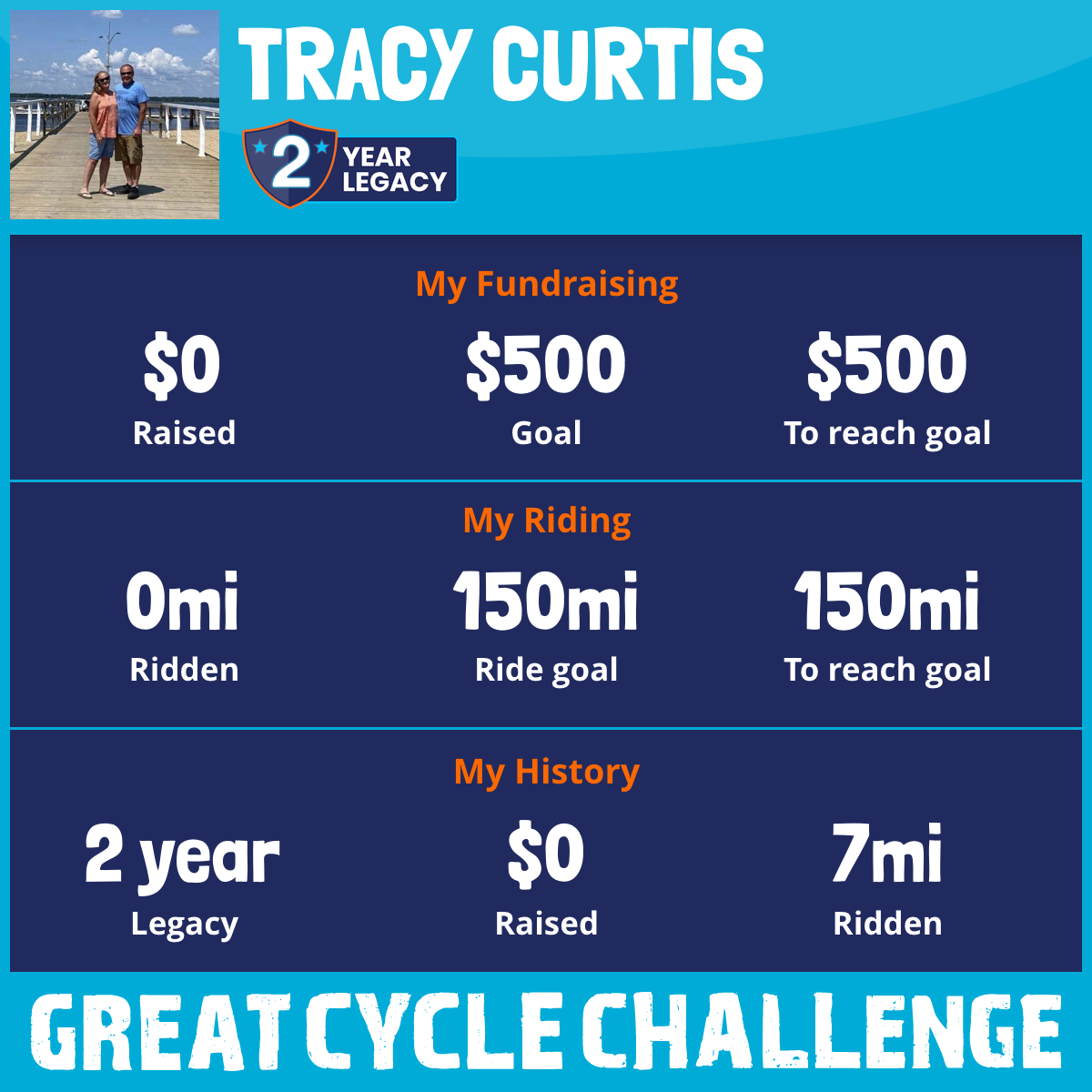 I am riding 150 mi in memory of Jared. Please sponsor me and support my challenge to fight kids' cancer and save little lives.