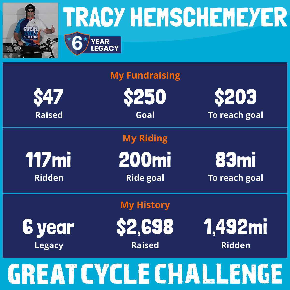I am riding 200 mi to fight kids' cancer and save little lives. Please sponsor me to support my challenge!