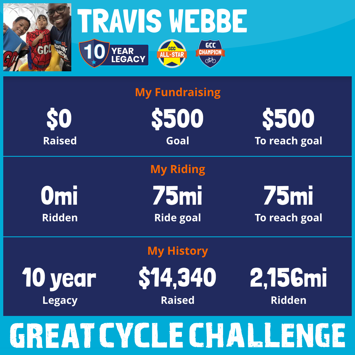 So I am raising funds through my challenge to help these kids and support Children's Cancer Research Fund to allow them to continue their work to develop lifesaving treatments and find a cure for childhood cancer.