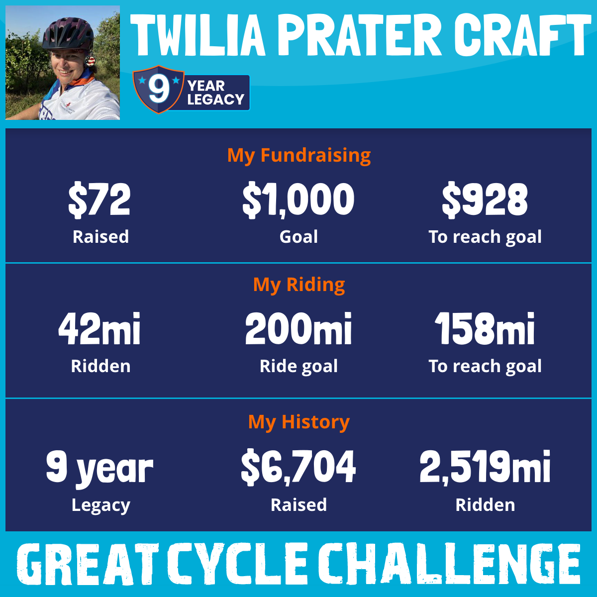 853 mi Ridden$1,072 Raised2018