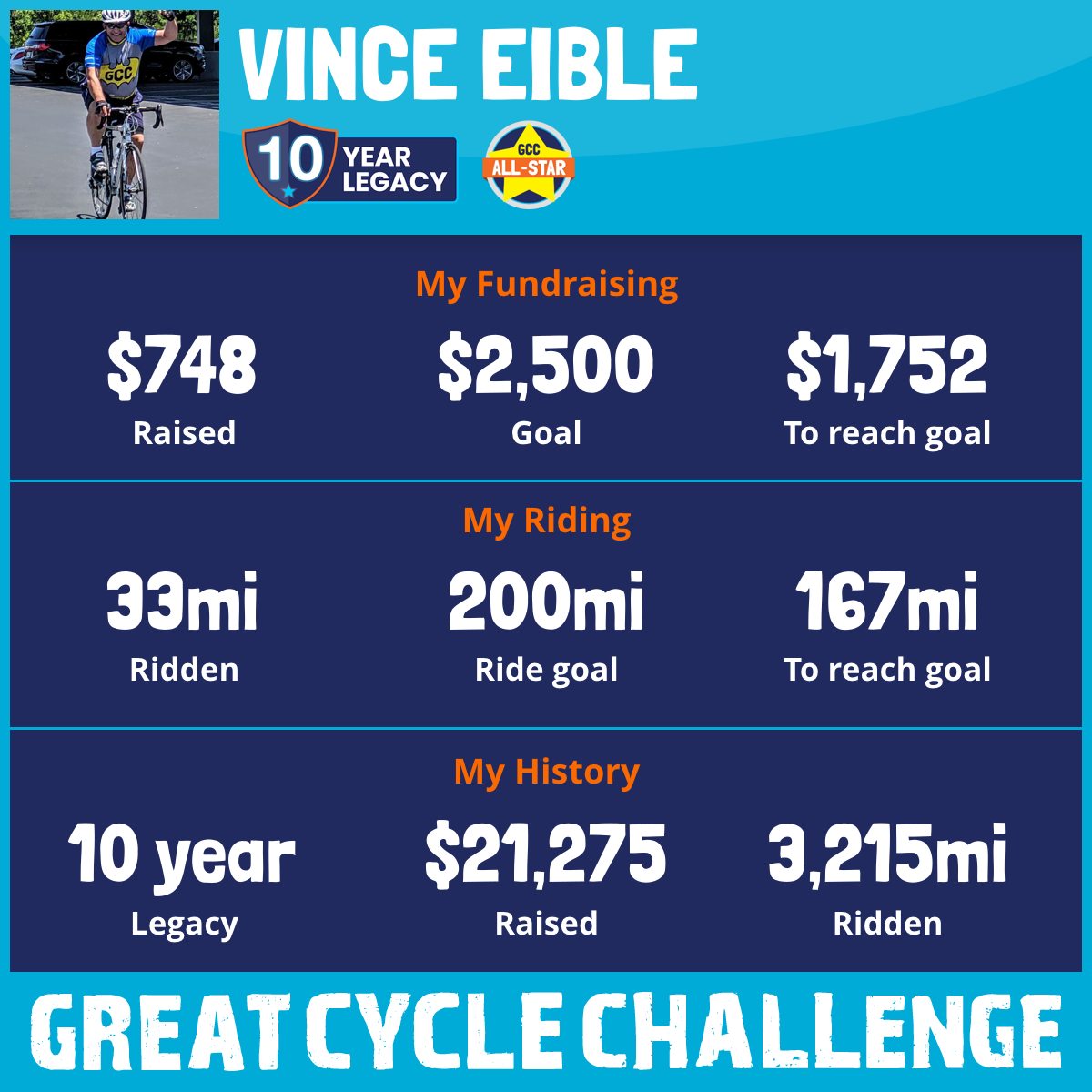 231 mi Ridden$3,963 Raised2025