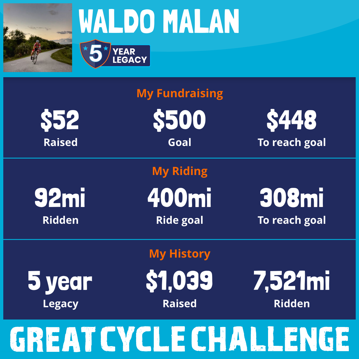 I am riding 400 mi for Machiel Andries. Please sponsor me and support my challenge to fight kids' cancer and save little lives.