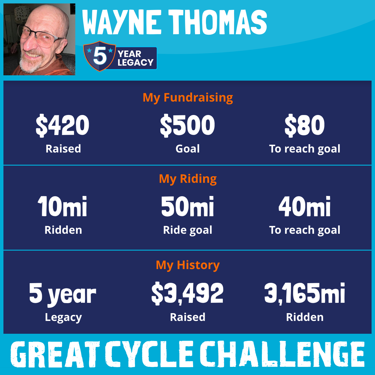 This year marks the 5th year I will be riding for this worthy cause, raising money and awareness. I am supporting the mission to end childhood cancer and save the lives of little children. And this year it is even more poignant for me as I have undergone chemo and stem cell transplant myself. I want nothing more than for the kids to receive the same quality of care that I was fortunate enough to receive. I am still in recovery, so I cannot pledge more than 50 miles, but I will do everything I can to complete those miles. ❤️
