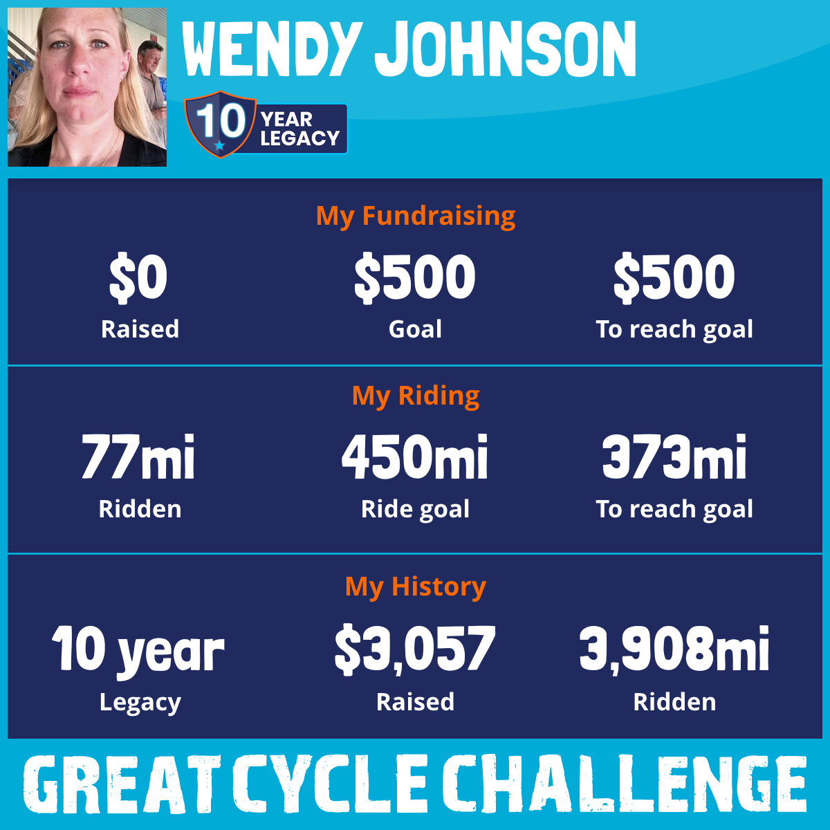 I am riding 450 mi in memory of Connie Johnson & Debbie Bergin. Please sponsor me and support my challenge to fight kids' cancer and save little lives.