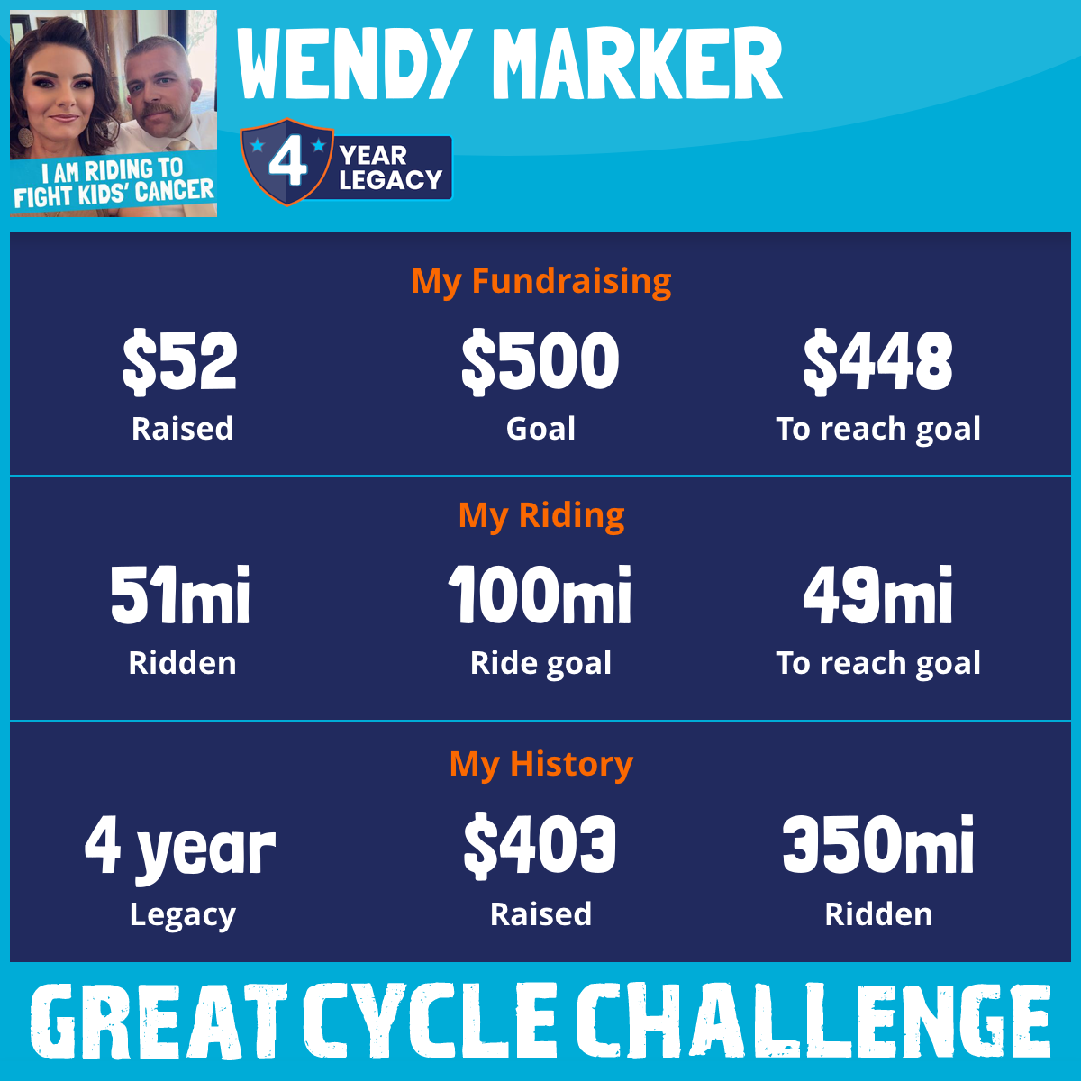 So I am raising funds through my challenge to help these kids and support Children's Cancer Research Fund to allow them to continue their work to develop lifesaving treatments and find a cure for childhood cancer.