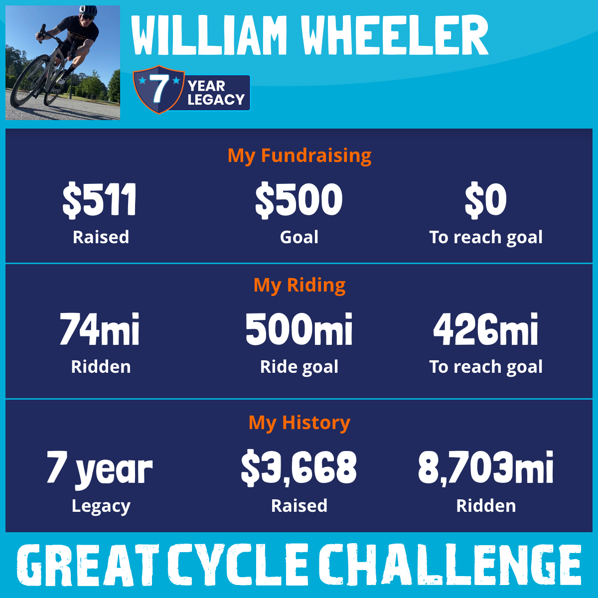 1,953 mi Ridden$528 Raised2021
