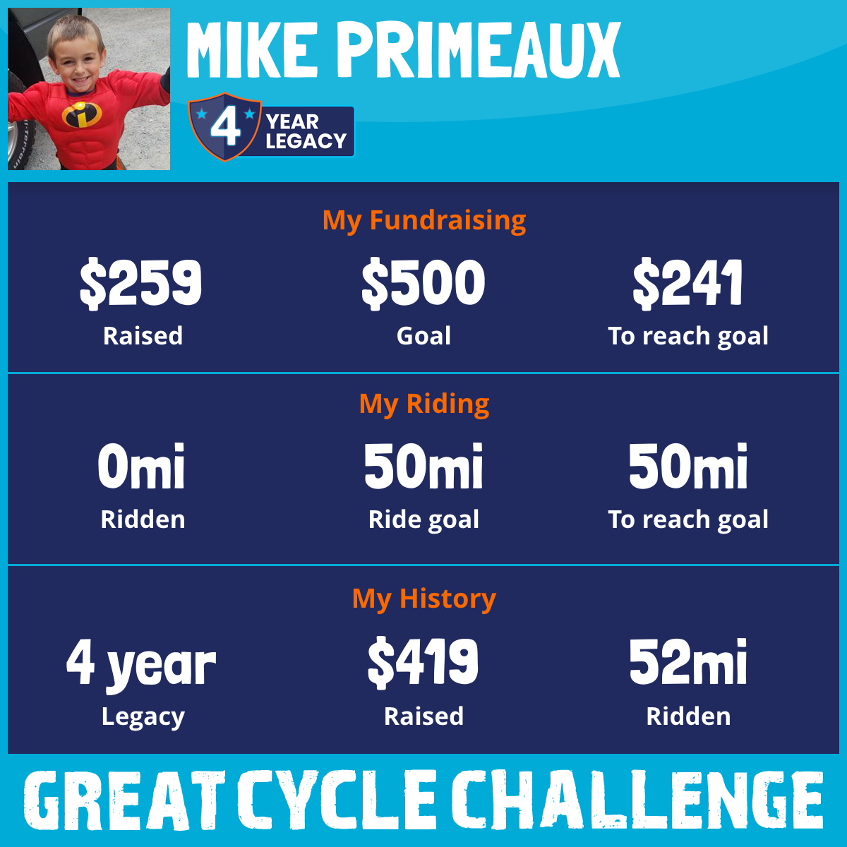 52 mi Ridden$160 Raised2018